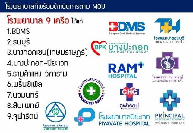여기에 참여하는 병원 체인은 BDMS 병원, 톤부리 병원, 방콕 체인 병원(까셈랏), 방파콕-피야바테 병원, 람캄행-비파람 병원, 프린시펄 병원, 나와민 병원, 신파엣 병원, 쭐라랏 병원 등으로 여기에 소속된 354개 병원에서 적용된다.
