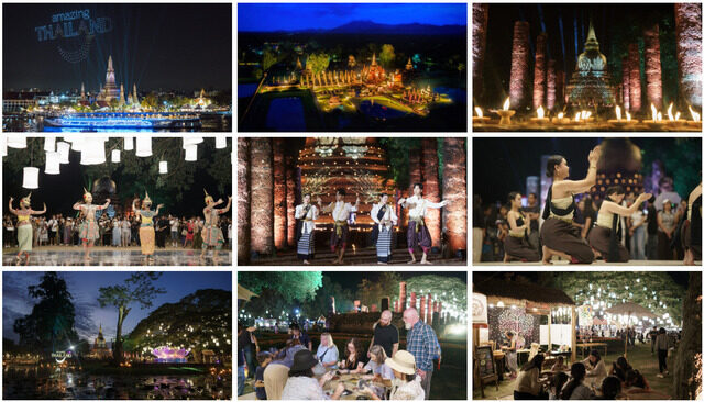 수코타이 마하 러이 크라통 축제는 2025년 10월 27일부터 11월 5일까지 수코타이 역사공원 내 왓 차나 송크람에서 매일 저녁 9시 21분에는 촛불 점등식이 열려 참가자들이 시리킷 왕태후를 추모하고 감사하는 마음을 전한다. 왕실 음악, 태국 전통 음악, 그리고 여왕 폐하를 기리는 문화 공연이 펼쳐지며, 엄숙한 분위기에 맞춰 조명과 장식의 수위가 조절된다. 수코타이의 유산을 조명, 공예 시연, 지역 특산 음식, 그리고 향수 어린 분위기 속에서 펼쳐지는 문화 공연은 방문객들이 전통 의상을 입고 즐길 수 있도록 한다.