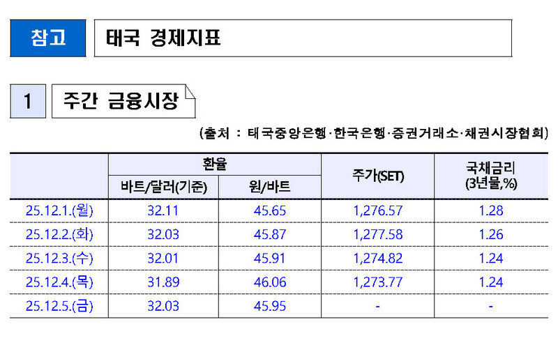 태국 경제관련 현지 언론동향 (25.12.2.~25.12.9.)