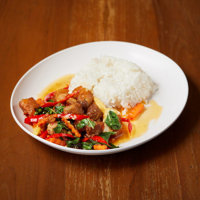 5. 카오 크라파오 무 크롭 (바질과 밥을 곁들인 바삭한 돼지고기 볶음)